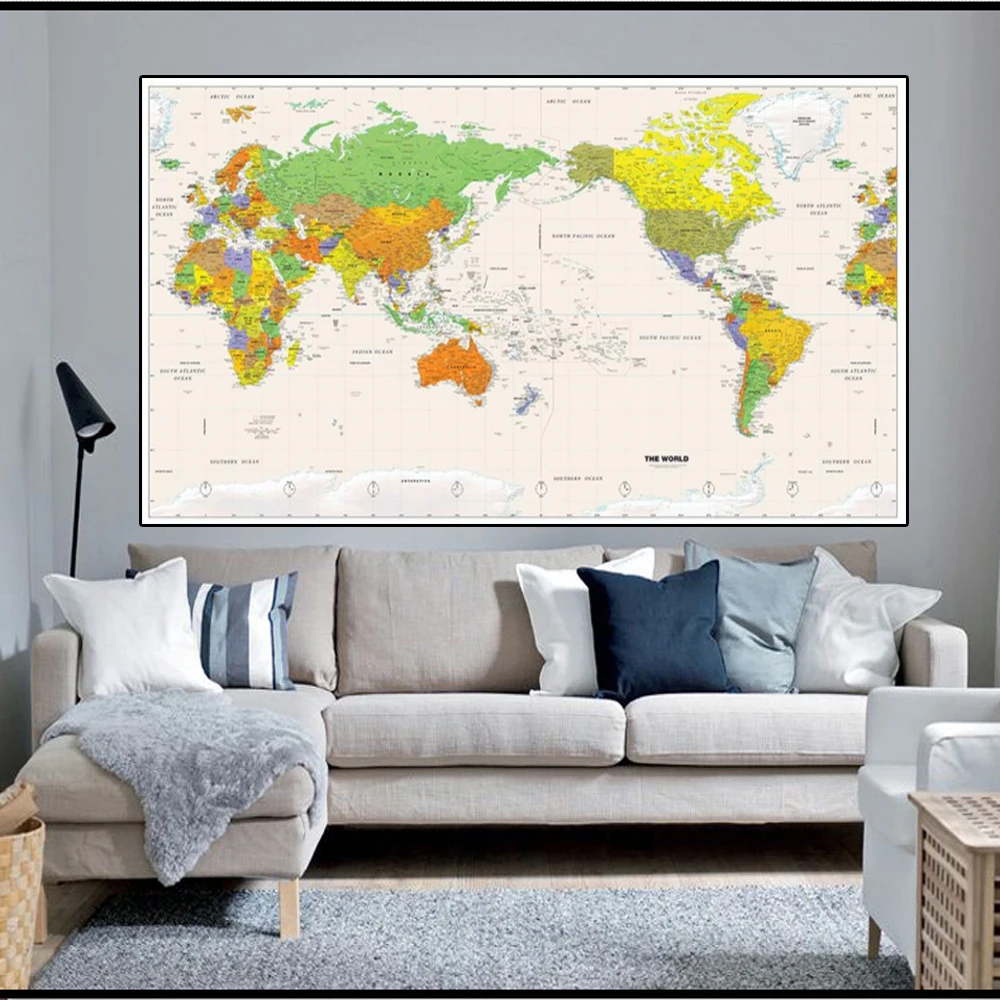 Slide 150x100cm The World Political Map Without Flag Retro Wall Art Poster Non-woven Canvas Painting Home Decoration School Supplies